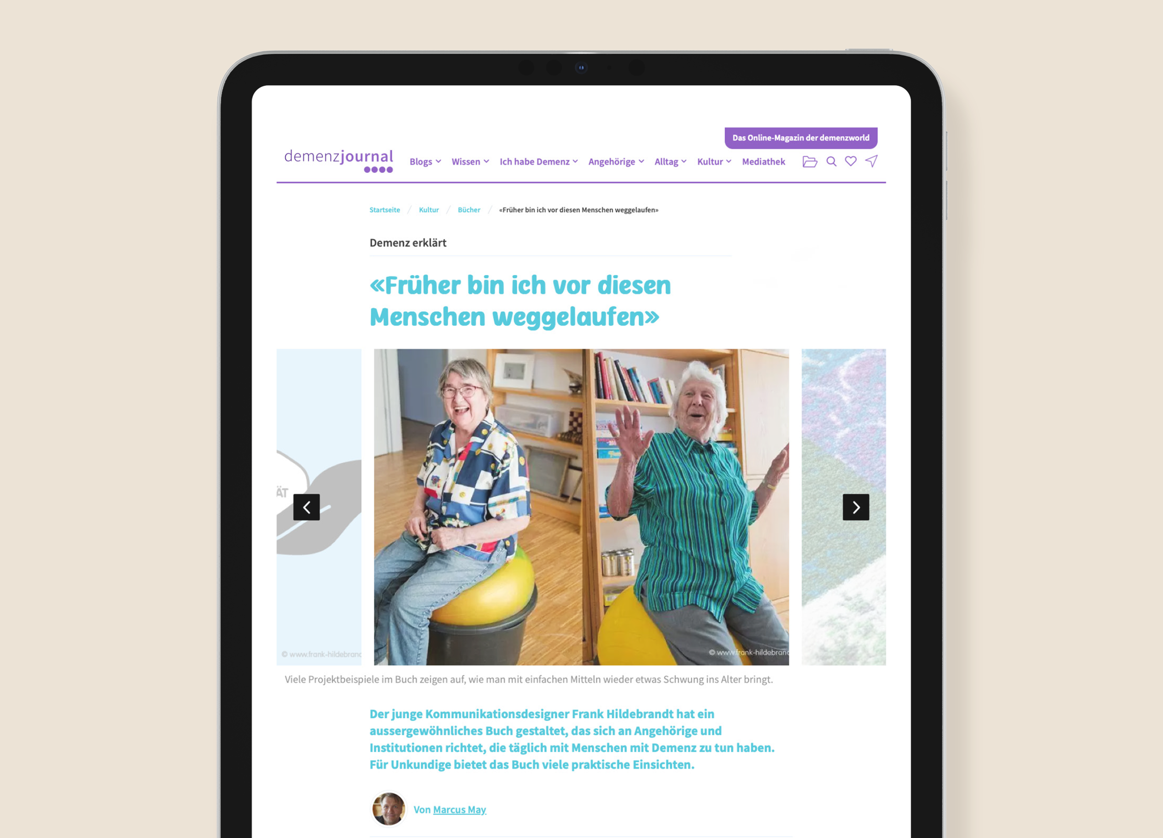 »Frank ist für uns ein zuverlässiger Partner geworden, wenn es um kreative Lösungen geht. Es macht Spaß mit ihm zu arbeiten, weil wir durch sein sehr umfassendes fachliches Wissen zum Thema Demenz, Pflege und Alter nie viel erklären müssen und sofort an die Designideen gehen können.