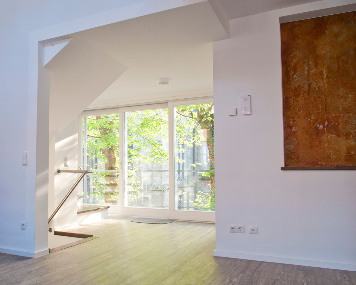 Das Steuerbüro Schoemaker besticht durch seine verwinkelte und interessante Architektur. Doch die großflächigen, weißen Wände und der insgesamt hohe Weißanteil im Büro ließen viele Bereiche kahl, leer und ungestaltet wirken. Sobald das natürliche Licht auf diese Flächen traf, veränderte sich jedoch die Wahrnehmung – Das Spiel von Licht und Schatten rückte in den Vordergrund.